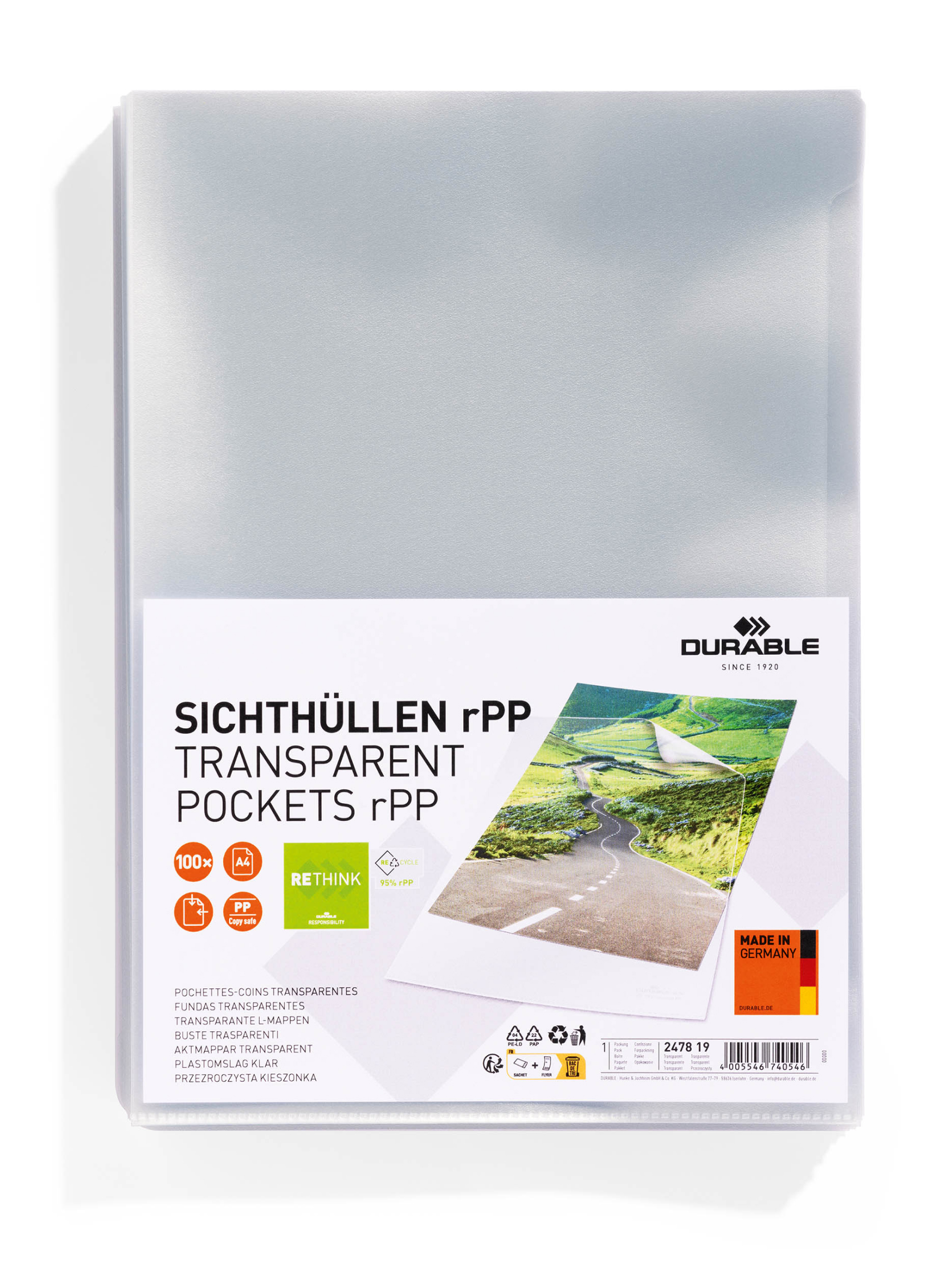 Az irodai élet egyik leggyakrabban használt kelléke, a műanyag lefűzhető és átlátszó genotherm, most végre fenntartható változatban is elérhető. Milliókat használnak belőlük naponta, és mostantól a DURABLE új, legalább 95%-ban újrahasznosított polipropilénből készült tasakjai lehetővé teszik, hogy a cégek jelentős lépést tegyenek a zöld iroda irányába.